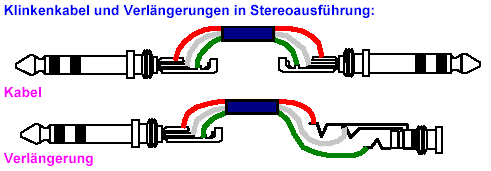 Monokabel eignen sich als Gitarrenkabel und Verbindungsleitungen zwischen elektronischen Instrumenten sowie als Lautsprecherleitung zwischen Verstärkern und Boxen. Stereokabel eignen sich für Stereoinstrumente, gleichzeitigen Hin- und Rückführungen von Tonsignalen (bei Effektgeräten z. B.), sowie als Übertragungsleitung von symmetrischen Leitern aus unsymmetrischen. Sie sind für echte Symmetrie nicht geeignet, da die Masse (im Gegensatz zu XLR-Steckern) immer auf das Gehäuse geführt wird, also eine Masseverbindung im Signalweg möglich ist, was zu Brimmschleifen führen kann. |